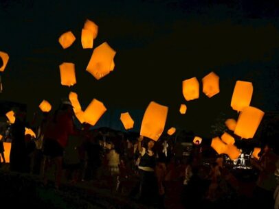 1人1人の願いをのせて夜空にランタンを放ちます。
