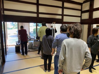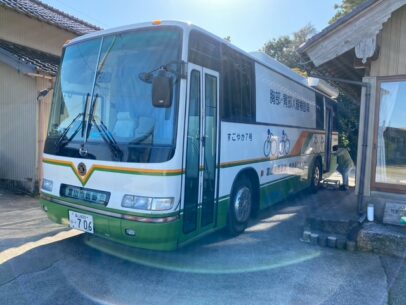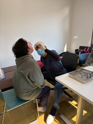 検診バスが到着し、古民家の憩いの間はあっという間に検診会場に早変わりです🏥